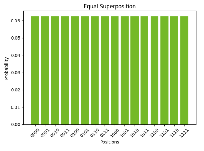 Let's compute for the equal superposition state graphed above. By our choice of and its linearity, we get that